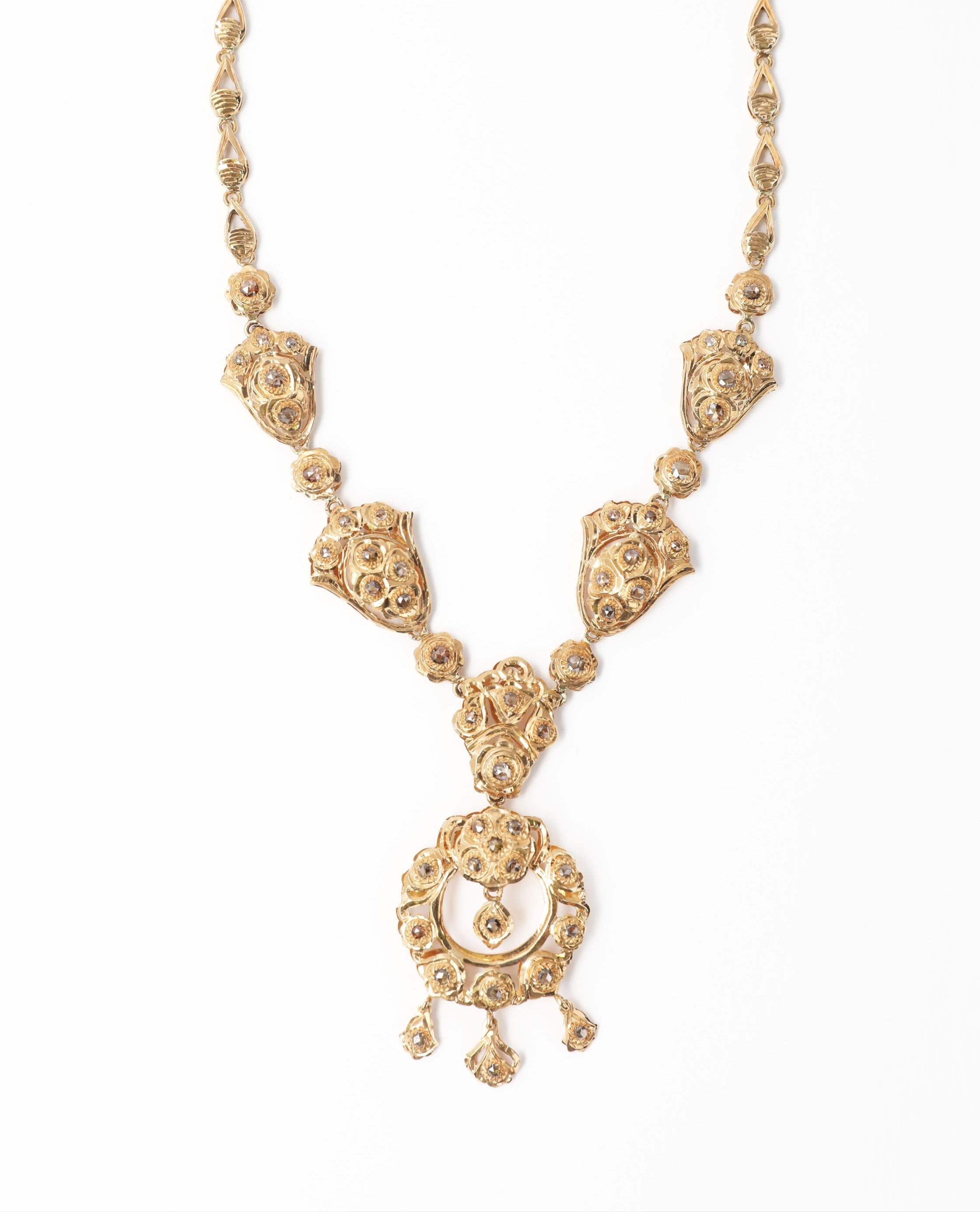 Collier beldi marocain en or 18K, délicatement façonné à la main, paré de rosaces étincelantes incrustées de diamants.